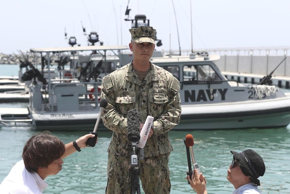 U.S. Navy Commander Sean Kido, head of Explosive Ordnance Disposal Mobile Unit 11 (EODMU 11) provided the updates at U.S. government-organized event for journalists in the United Arab Emirates on June 19, 2019. EODMU 11’s main mission is explosive ordnance disposal, including the safe removal of naval mines, but also has the organic capability to conduct related weapons technical intelligence duties to identify the characteristics and origins of recovered explosive devices. The unit is presently assigned to the Navy’s Fifth Fleet’s Commander, Task Group (CTG) 56.1 and is responsible for performing those missions, as well as other combat diving and salvage operations, throughout the Middle East.
