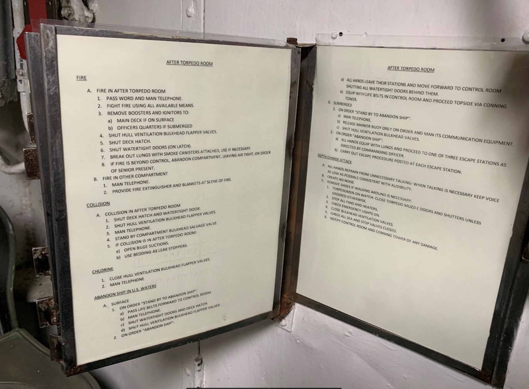 One thing that is similar among every submarine, and ship for that matter, is the procedures utilized to deal with each casualty. Here is a picture of the PIP—Procedure In Place—on the USS Cavalla (SS-244). This is a metal book that holds the procedures for every casualty.