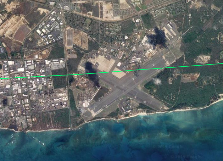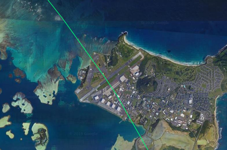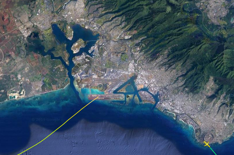 The aircraft finally touched down at Daniel K. Inouye International Airport in Honolulu on Aug. 14, 2019. The plane conducted a low-level flight around the island of Oahu that same day at an altitude of around 6,000 feet, which included passing over back over Daniel K. Inouye International Airport, as well as flying past, Hickam Air Force Base, Kalaeloa Airport, and the Lualualei Naval Radio Transmitting Facility.
