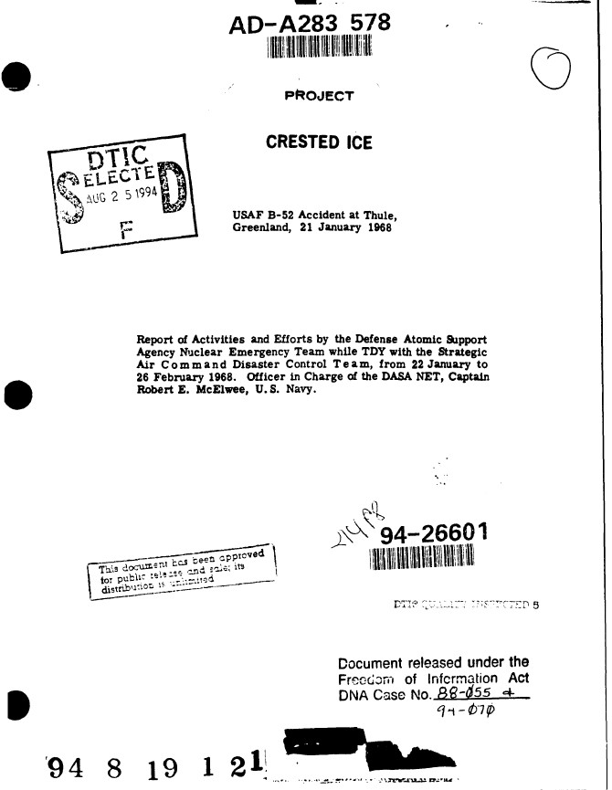 The USAF quickly launched Project Crested Ice to cleanup the nuclear mess, an effort which required the collection of thousands of pieces of debris from the ice sheet and ocean floor as well as over 500 million gallons of ice water. Hundreds of USAF personnel worked for eight months in subzero temperatures to recover radioactive materials which were then shipped to South Carolina for safe disposal.