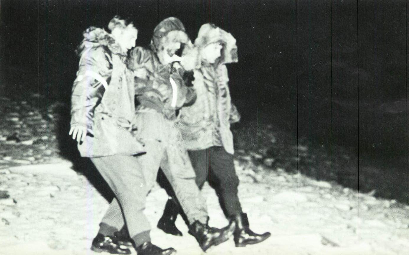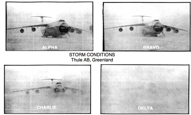 Emergency shelters are located at intervals along Thule’s network of roads, and a strict buddy system is used whenever personnel leave the base. During some storm conditions, personnel are restricted to the buildings in which they are located whenever the severe conditions are declared with no pedestrian or vehicle travel whatsoever. Frostbite, hidden pockets of water just below the snow, and snow blindness are everyday dangers faced by USAF personnel at Thule.