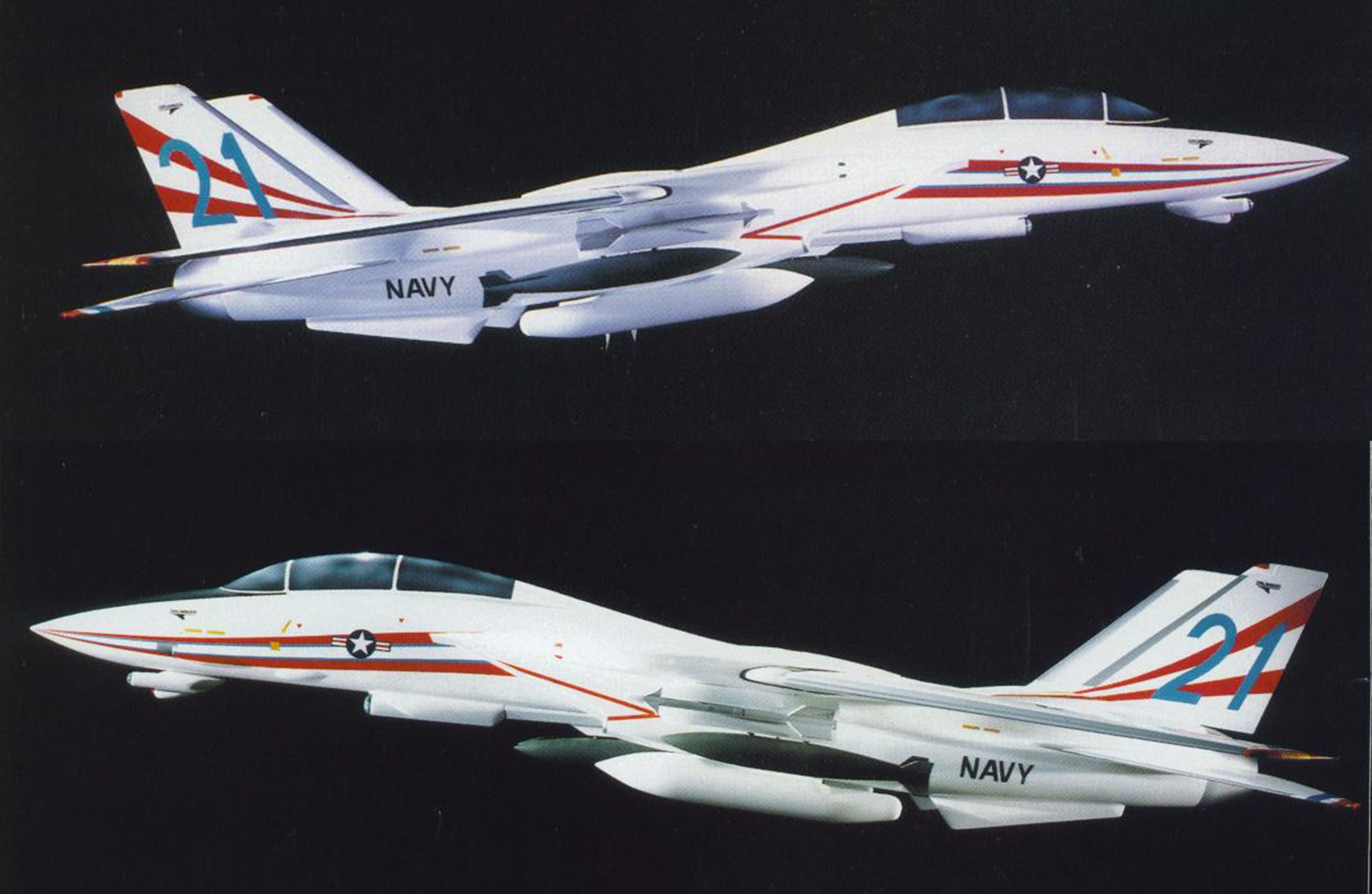 Quick Strike was aimed more at cheaply picking up the Intruder’s slack than at replacing the A-12’s high-end capability, and was seen at the time as an insufficient technological leap over the F-14B and D models already in service. Also, rumors that an inexpensive clean sheet next-generation Hornet design was in the works over at McDonnell Douglas did not help Quick Strike’s attractiveness. So, Grumman came back to the Navy with a true “Super Tomcat,” called the Super Tomcat 21 [ST21].