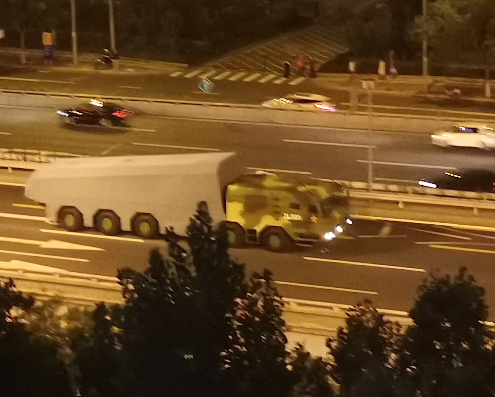 There is no obvious indication about what this new missile is or what its mission may be. The video shows that it is vertically launched from a 10-wheel transporter-erector-launcher (TEL) that appears to be able to carry two of the weapons in a ready-to-fire configuration. Photos of preparations for the 70th-anniversary parade in Beijing on Oct. 1, 2019, have shown a similar, previously unseen TEL with its entire rear section tarped off.