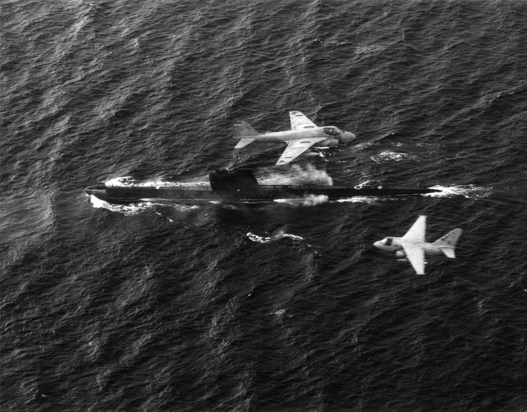 Two significant mid-to-late Cold War Soviet threats to the aircraft carrier were the Soviet nuclear-powered Echo II class and the diesel-electric Juliett class of cruise missile-firing submarines (SSGN and SSG respectively). Both of these classes had to surface to launch. To meet this very real danger, Viking crews regularly practiced bomb delivery.