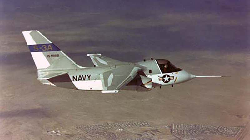 While the S-2 was the first U.S. naval aircraft designed from the drawing board to be a submarine hunter and killer in one fuselage, the S-3 was the first carrier-based jet designed to perform that mission with all its hunt and kill computerized. Univac joined Lockheed’s effort, providing the AN/AYK-10 General Purpose Digital Computer (GPDC) that coordinated input from all of the Viking’s sensors. Texas Instruments contributed the AN/APS-116 radar, the AN/ASQ-81 MAD (magnetic anomaly detector) system, and the AN/OR-89 FLIR (forward-looking infrared) systems that made the Viking state-of-the-art in non-acoustic detection of submarines. Finally, IBM also contributed to her non-acoustic detection prowess by creating the groundbreaking AN/ALR-47 ESM (electronic support measures) system.