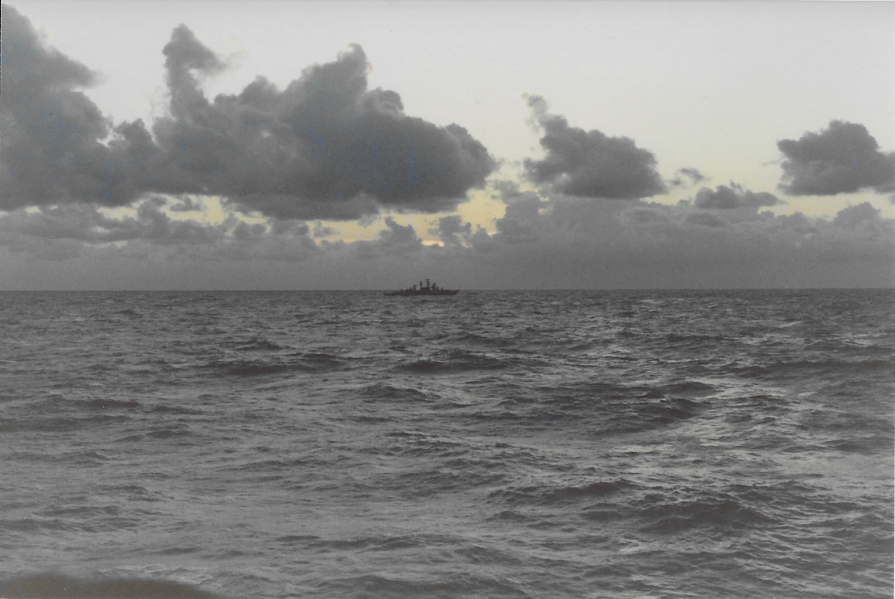 We made our way quickly across the Atlantic. I don’t recall ever “stopping” to do flight ops before we entered the Med. Having transited the Strait at night, the CVBG grew in strength by one warship. A destroyer of the Soviet Navy took station off the Nimitz’ port side.
