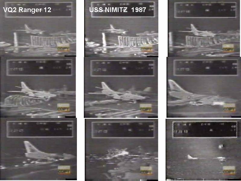 There was absolute silence in the ready room as all eyes were on the PLAT (Pilot Landing Aid Television) screen. The Nimitz’ engines crashed back and we came to a stop with the aircraft’s aft fuselage and tail now jutting skyward off our port side. The plane guard helo hovered over it, her searchlight illuminating the wreckage and our hope that helmets would appear. We also listened as the helo pilot requested permission for his Rescue Swimmer to go into the water and enter the aircraft. “NO!” was the answer. After what seemed like an eternity, hope turned to horror as the tail slipped beneath the waves.