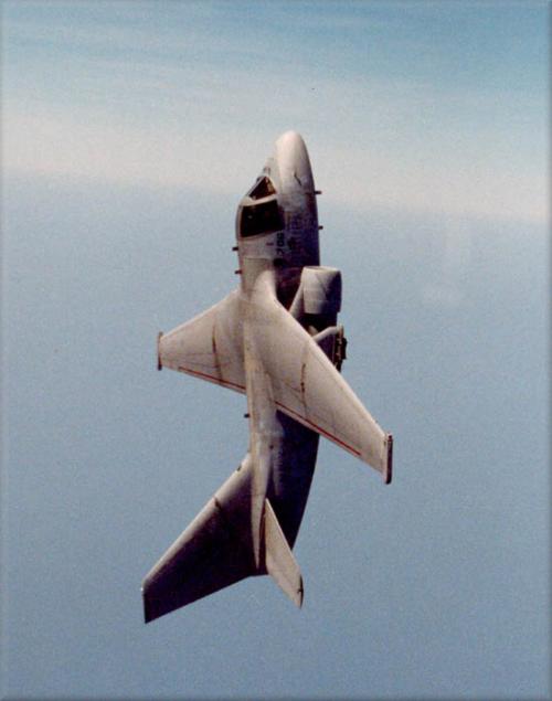 All four of us were laughing. Per the scenario, we then dropped our landing gear as if we were on final approach to a regional airfield in a country that supported terrorists. The Tomcats moved away, but stayed just off our wings. My eyes were then drawn back to my FLIR screen as eight pinpoints of heat came up on our six very fast. They would quickly materialize into eight A-7s that passed quickly beneath us and the water, almost “thumping” us. And then…they all released their (practice) bombs! Right down the simulated runway we were supposed to be landing on!