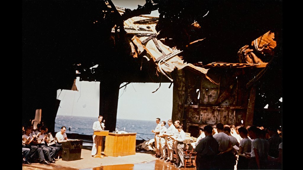 In the end, the Navy figured that 724 sailors were killed and hundreds were wounded in the attack and assessments have since elevated that total to potentially over 800 killed and even more wounded. Suffice it to say it was one of the most horrific single incidents of the entire war for the United States. It’s mind-boggling that the crew saved the ship and then sailed it back to the east coast of the United States for repairs. Those who stuck it out were designated by the captain as being part of the “Big Ben 704 Club,” as in 704 crewmen, although the actual number of how many sailors really stuck with the ship remains in question.