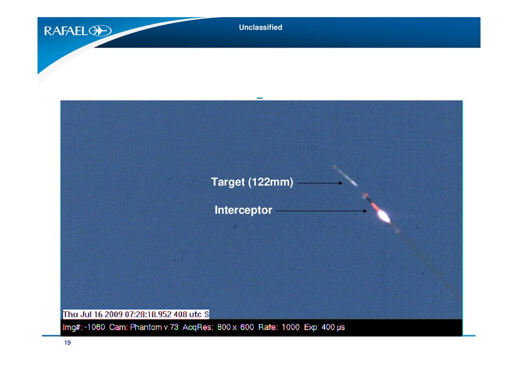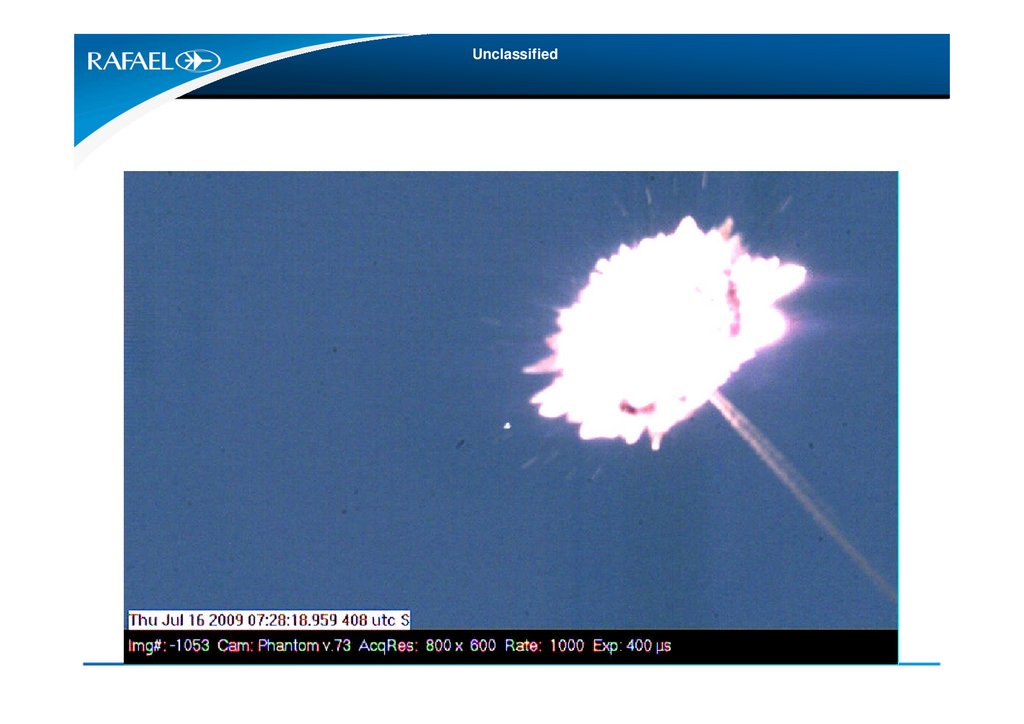 Tamir uses a very sensitive active radar seeker and a command data-link system to chase down an incoming rocket. These components and its onboard autopilot get the missile within extremely close range of its target, at which time the missile’s proximity fuse system detects the object as it begins to pass abeam the missile and detonates the onboard warhead, blasting it out of the sky. The missile is so agile and accurate that often times it actually slams into the incoming target, but it is not designed as strictly a hit-to-kill weapon by any means.