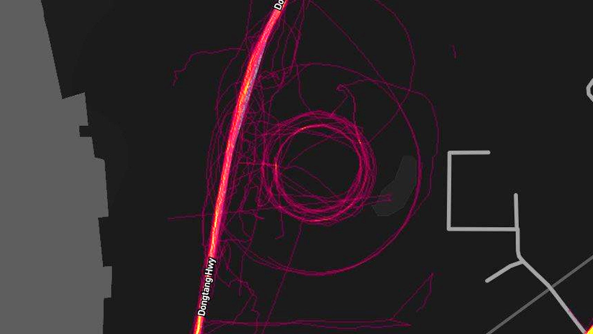 It also wasn’t just ships that were suffering the effects. C4ADS found that similar “crop circles” in Shanghai using Strava’s “Global Heat Map.” This company, which bills itself as a social fitness network, creates this map from the anonymized data that its app collects from users’ smartwatches and similar devices. This is ostensibly meant to show things like popular running and cycling routes, as well as general athletic activity.