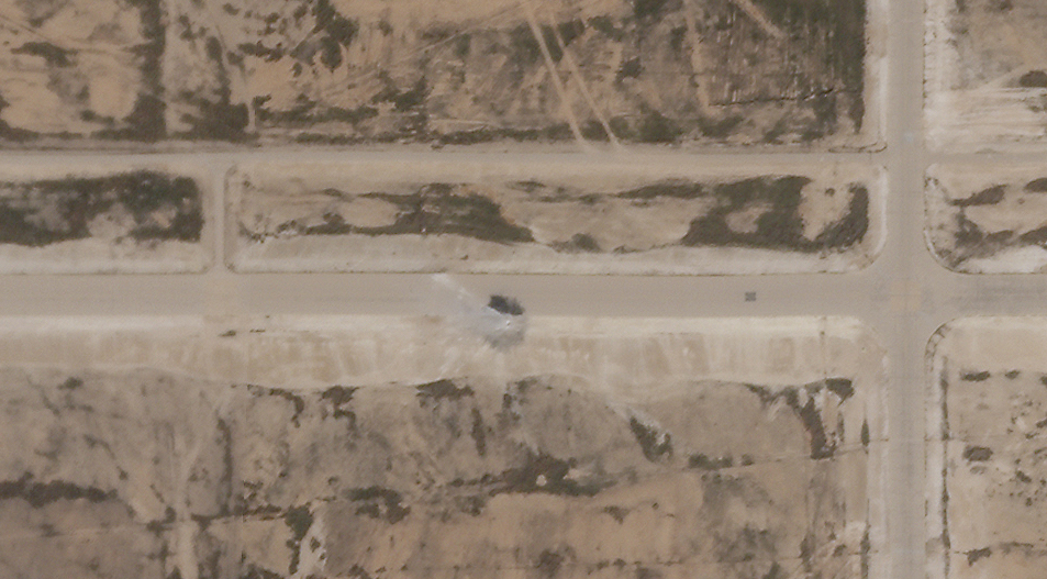 The southeastern corner of the base, where there is a large cluster of hardened aircraft shelters, also has an impact area. It is on one of the taxiways as seen below.