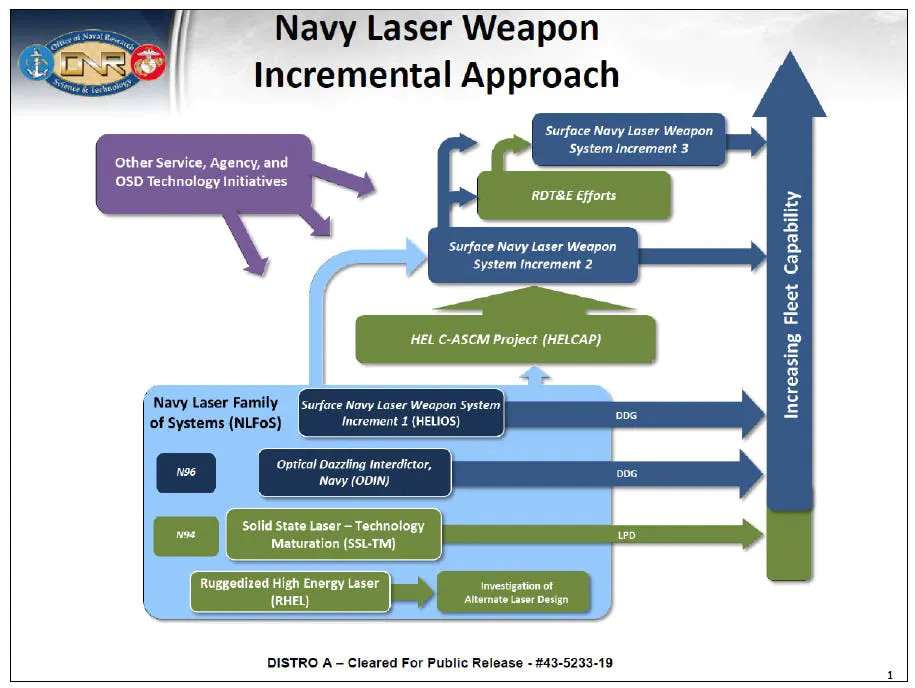 is now armed with the prototype developed under the Solid-State Laser Technology Maturation (SSL-TM) program. The service has also said that there is no immediate plan for an at-sea demonstration of a design developed under the Ruggedized High Energy Laser (RHEL) effort, the last of the four NLoS efforts.