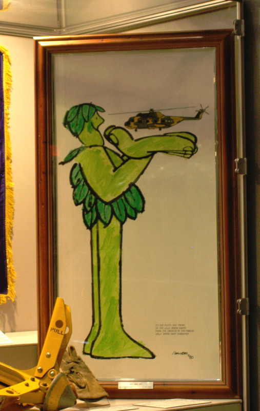 Fisk is credited with being the first to unofficially nickname the HH-3Es “Jolly Green Giants” because of the “green feet” the helicopter’s tandem landing gear wheels would leave in the grass when they touched down to make rescues. The moniker was also a reference to the well-known mascot of the Green Giant frozen food brand. The HH-3Es eventually officially received the name “Jolly Green” and the HH-53B/Cs became “Super Jolly Greens.”