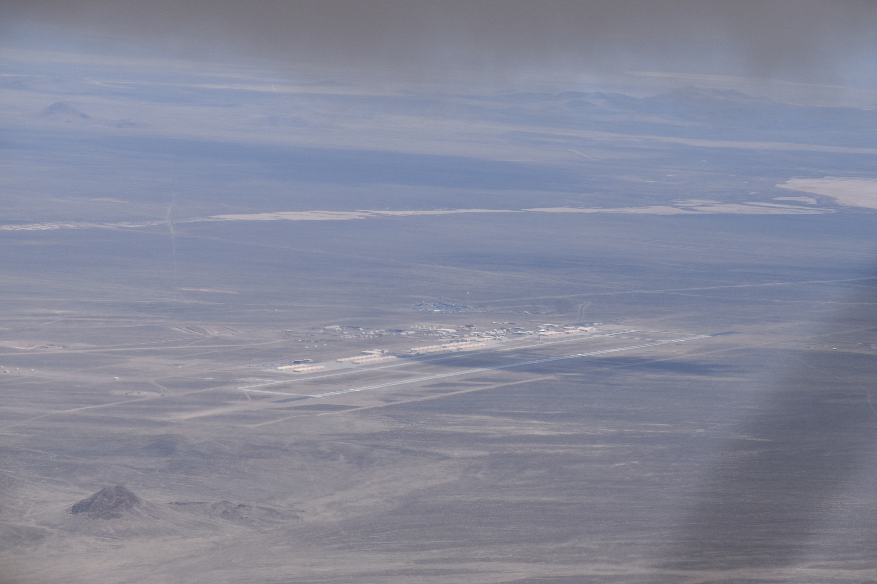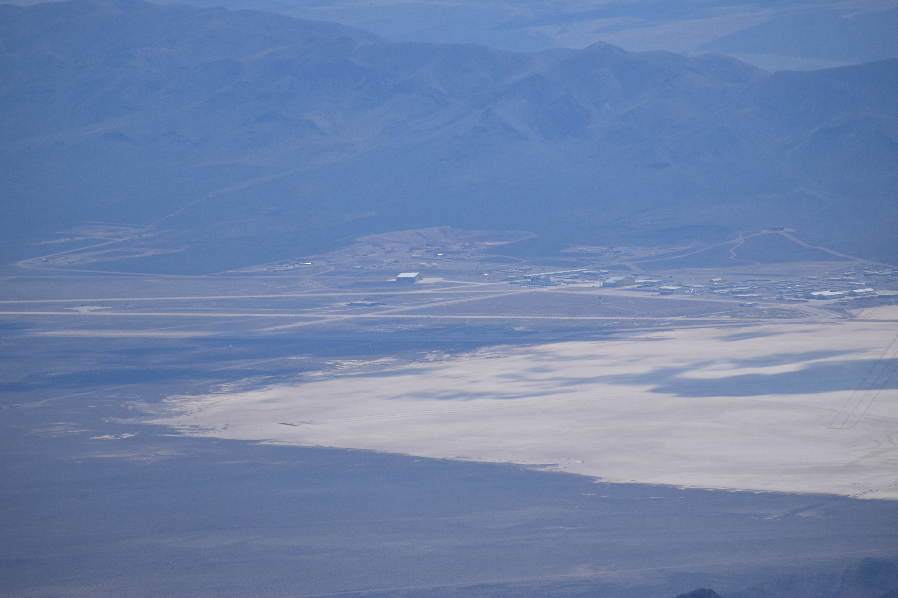 On another of Gabriel Zeifman’s flights around the NTTR, he made a remarkably close pass by Area 51’s southern reaches, resulting in awesome pics of the base being bathed in some beautiful light. Note the partially flooded lakebed, which is a fairly regular occurrence, and the absolutely massive abandoned runway.