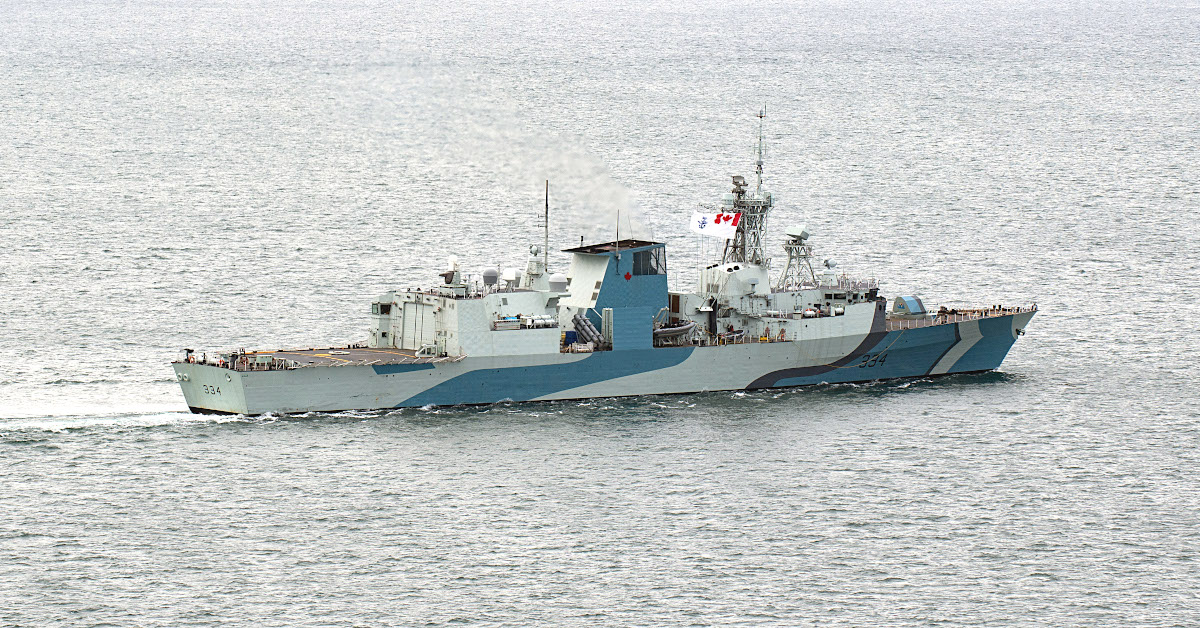Air forces around the world will often give their aircraft specialized paint jobs to commemorate anniversaries and other notable occasions, but it’s far less common to see navies do the same thing with their ships. Recently, however, the Royal Canadian Navy’s Halifax class frigate HMCS Regina recently took part in a training exercise wearing an iconic blue, black, and gray paint job, commonly known as a “dazzle” scheme, a kind of warship camouflage that first appeared during World War I.