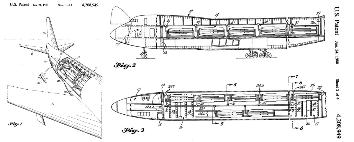How soon AFRL’s “bomb bay in a box” concept might turn into a viable weapon system, if at all, remains to be seen. The Air Force been kicking around ideas for an aircraft with a large munitions payload capacity, typically referred to as an “arsenal plane,” for decades now. In the aftermath of President Jimmy Carter’s decision to cancel the B-1A bomber program, the U.S. military explored lower-cost options, including, notably, a proposal from Boeing for a 747 airliner-based Cruise Missile Carrier Aircraft (CMCA). The CMCA concept, which you can read about more here, would have seen a 747-200C freighter adapted to carry 72 AGM-86 Air-Launched Cruise Missiles, an idea not too far removed, in basic principle, from what AFRL is talking about now.