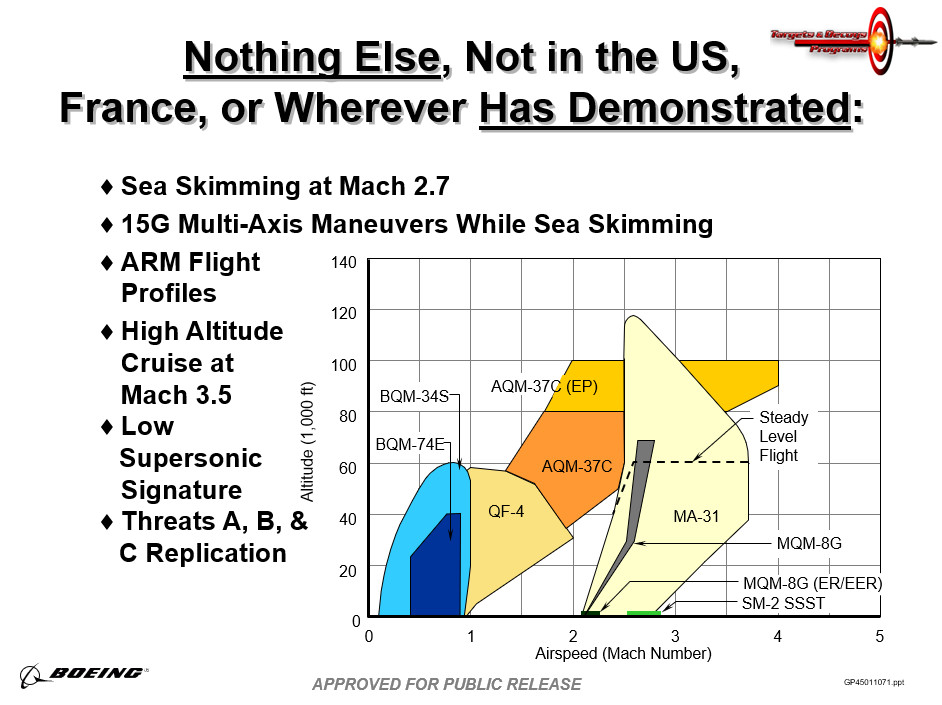 These targets had essentially identical performance to the original Russian weapons and could fly both anti-ship and anti-radiation profiles just like the missiles they were based on. This included being able to perform multi-axis maneuvers at up to 15 Gs while skimming over the waves.