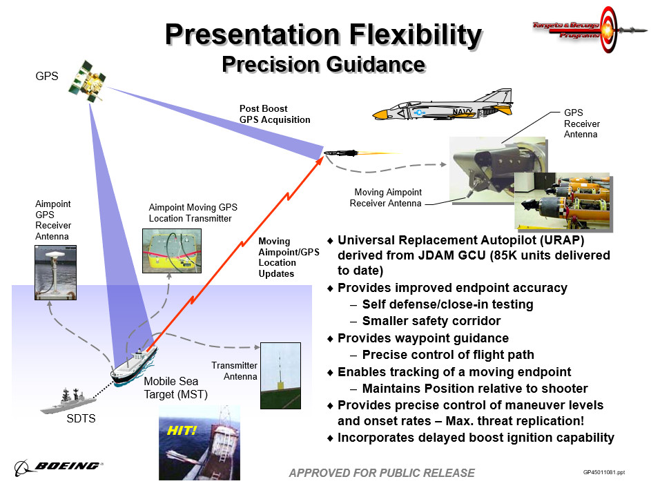 In 2004, the year the GQM-163A first flew, Boeing proposed an improved version of the MA-31, the MA-31PG, which replaced the URAP guidance system with one based on the GPS guidance package from the company’s Joint Direct Attack Munition (JDAM) kit. The JDAM kit had allowed both the Navy, as well as the U.S. Air Force and Marines, to rapidly convert dumb bombs into precision-guided munitions that can strike fixed targets in any weather conditions.