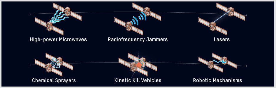 The U.S. military alone has already explored various types of high-powered microwave weapons that can scramble or damage electronic systems and is evaluating new designs, right now. These include systems that can disrupt enemy computer networks, knock down small drones, and fry the electronics in incoming missiles to throw them off course, among others. A sufficiently powerful burst of microwave energy could cause enough damage to cause a mission kill on satellites.