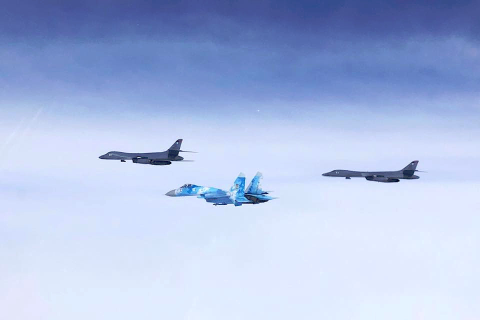 Video has since emerged of a Russian Flanker intercepting a B-1B recently over the Baltic. It’s not clear if this interaction took place during the Bomber Task Force Mission in that region last week or if it occurred as the bombers were heading to or from the Black Sea region today.