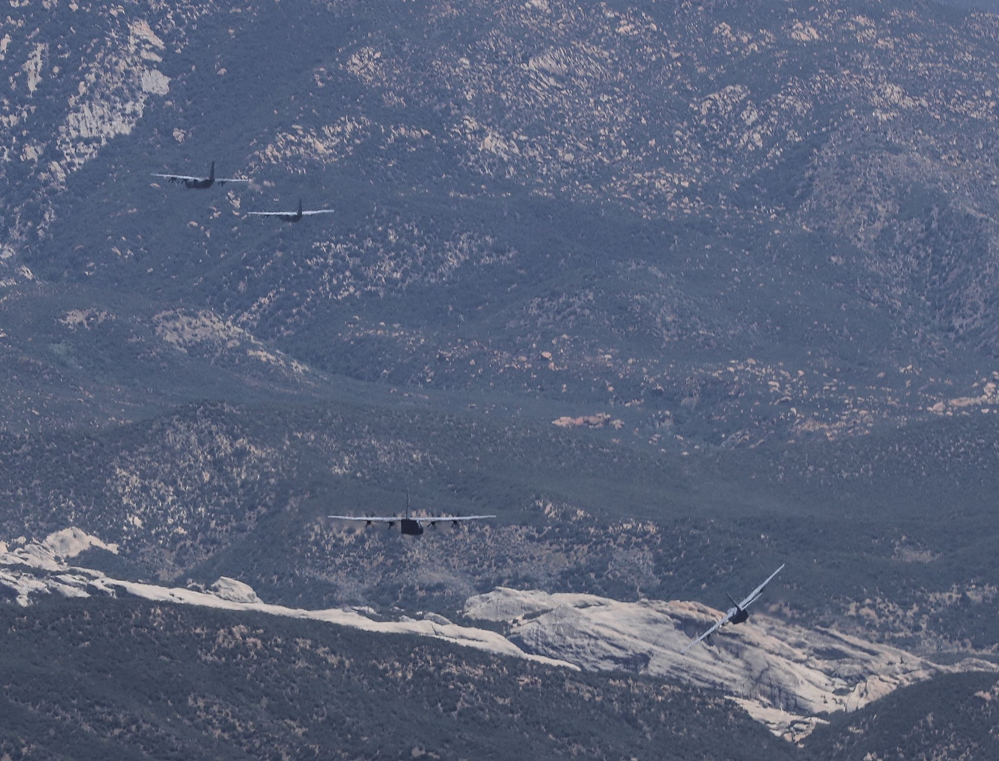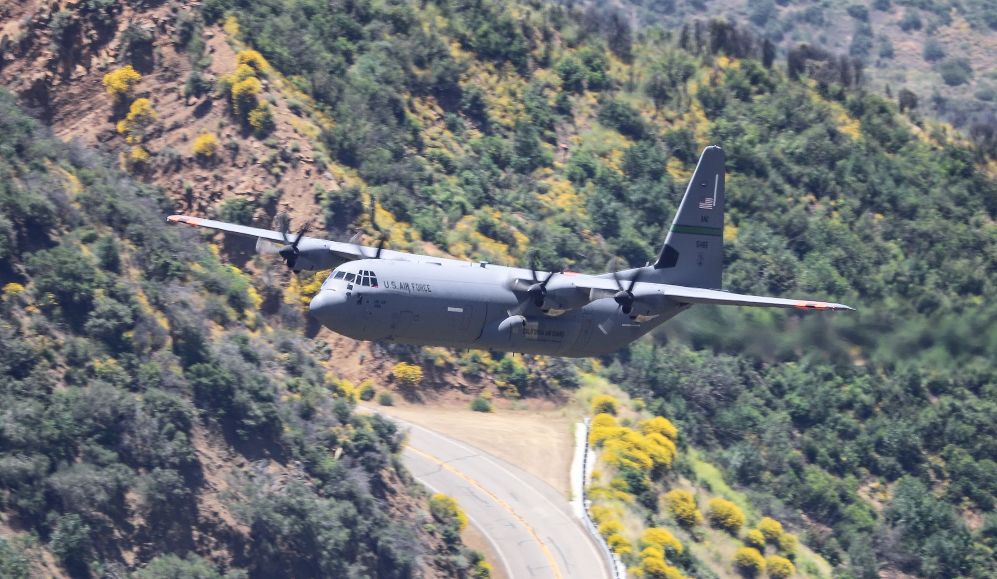 Christopher McGreevy went on another hike in search of aviation photography gold this week. This time, he was hunting for a large formation of C-130J-30 (stretched variant) Hercules airlifters that were snaking their way through steep canyons near Ventura, California.