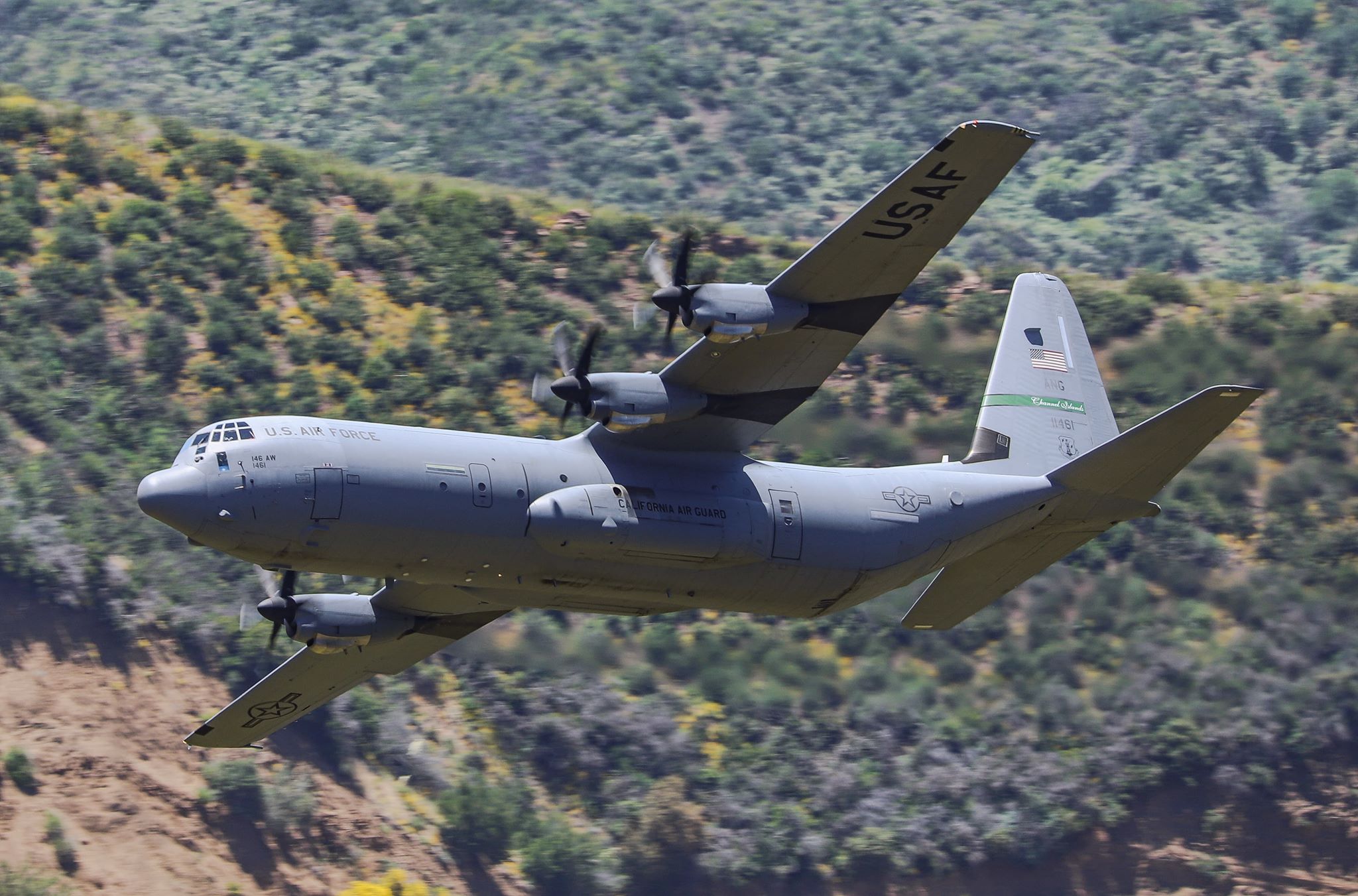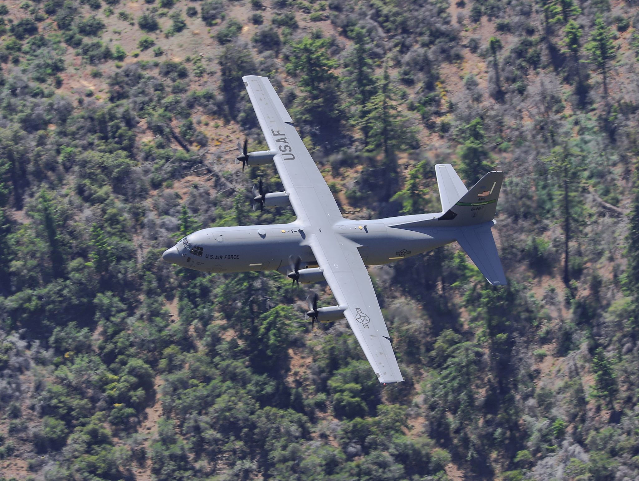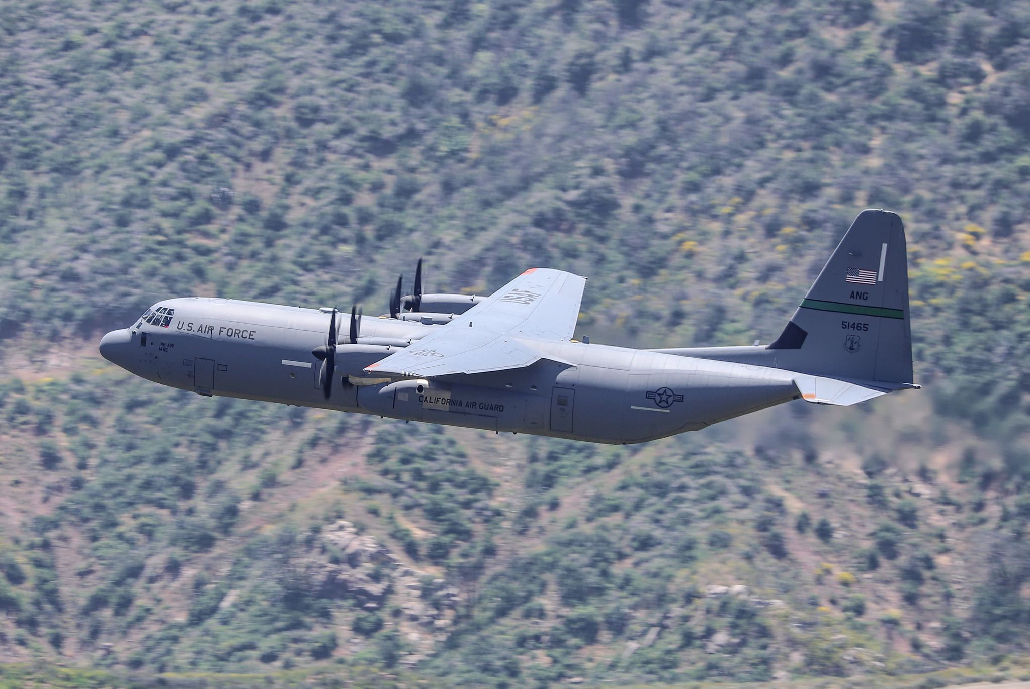 Seeing these clean (no external stores or pylons) stretched Super Hercules roaring through the steep California countryside is truly a sight to behold. Thanks a ton to Christopher for sharing this awesome display of California Air National Guard air mobility might with us!