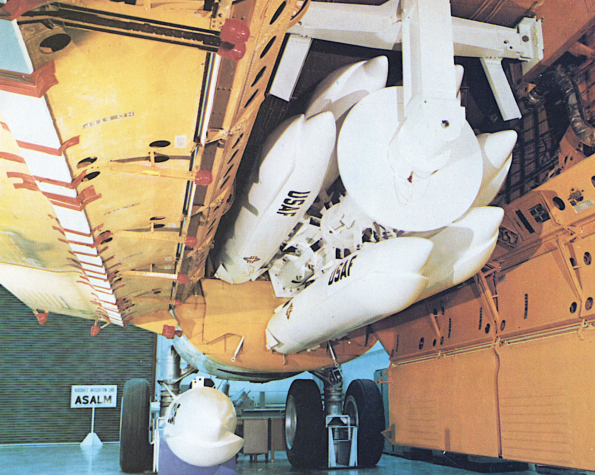 In 1972, the Air Force issued more contracts for studies of the propellants that the ASALM would use, as well as to explore guidance system options. Two years later, the service held a competition to select a defense contractor to put all of the system’s components together into an actual missile. A key requirement was for the final design to have the same general form factor as the SRAM and be able to use the same launchers without any modification, including a rotary launcher that fits inside the B-52’s bomb bay. The B-1A bomber, then in development, was also expected to be able to carry this same internal launcher.