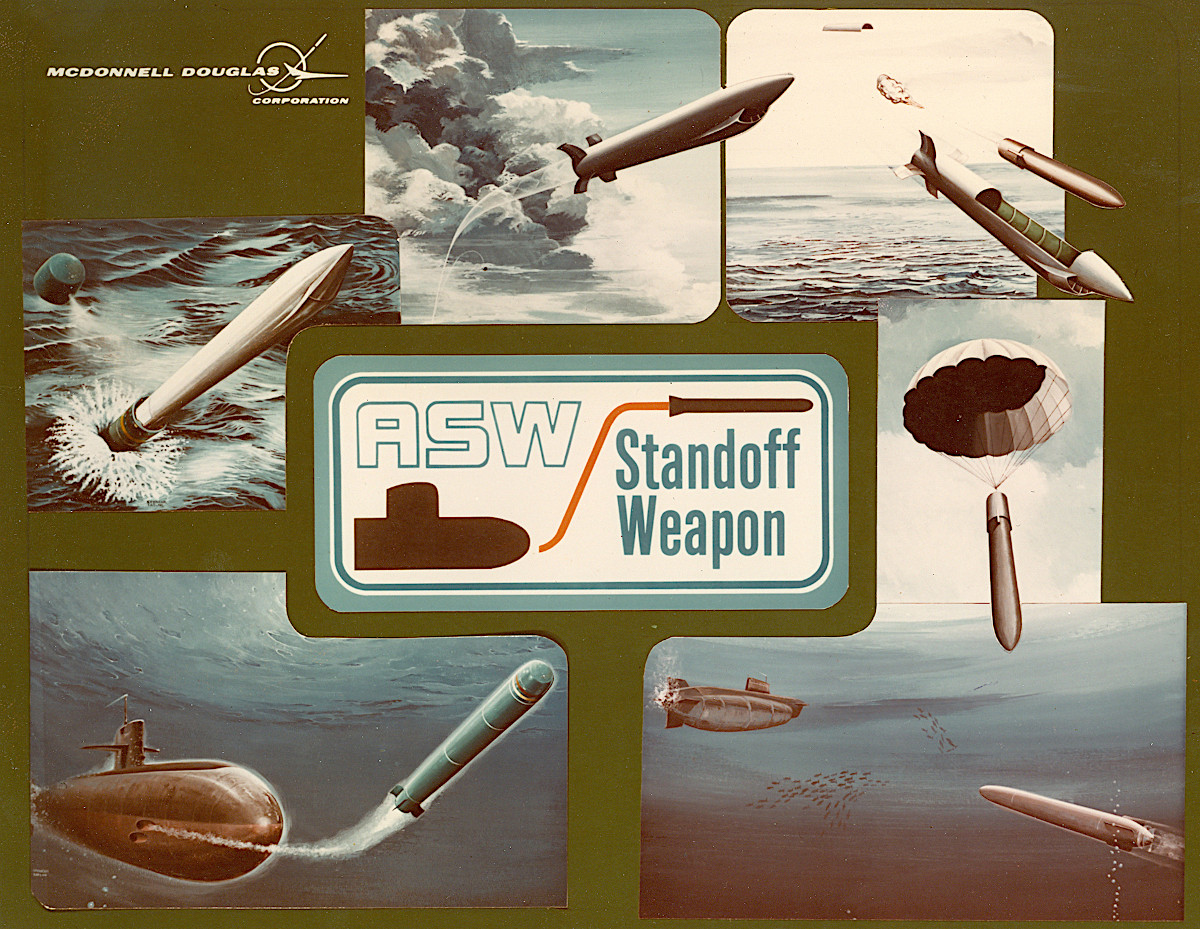 McDonnell Douglas also proposed a submarine-launched missile based on its proposed ASALM design that would carry a torpedo as payload and release it over the suspected location of an enemy sub. This was similar in some general respects to the submarine-launched UUM-44 Submarine Rocket (SUBROC) and the ship-launched RUR-5 Anti-Submarine Rocket (ASROC) that were in service at the time, but would have had massively longer range.