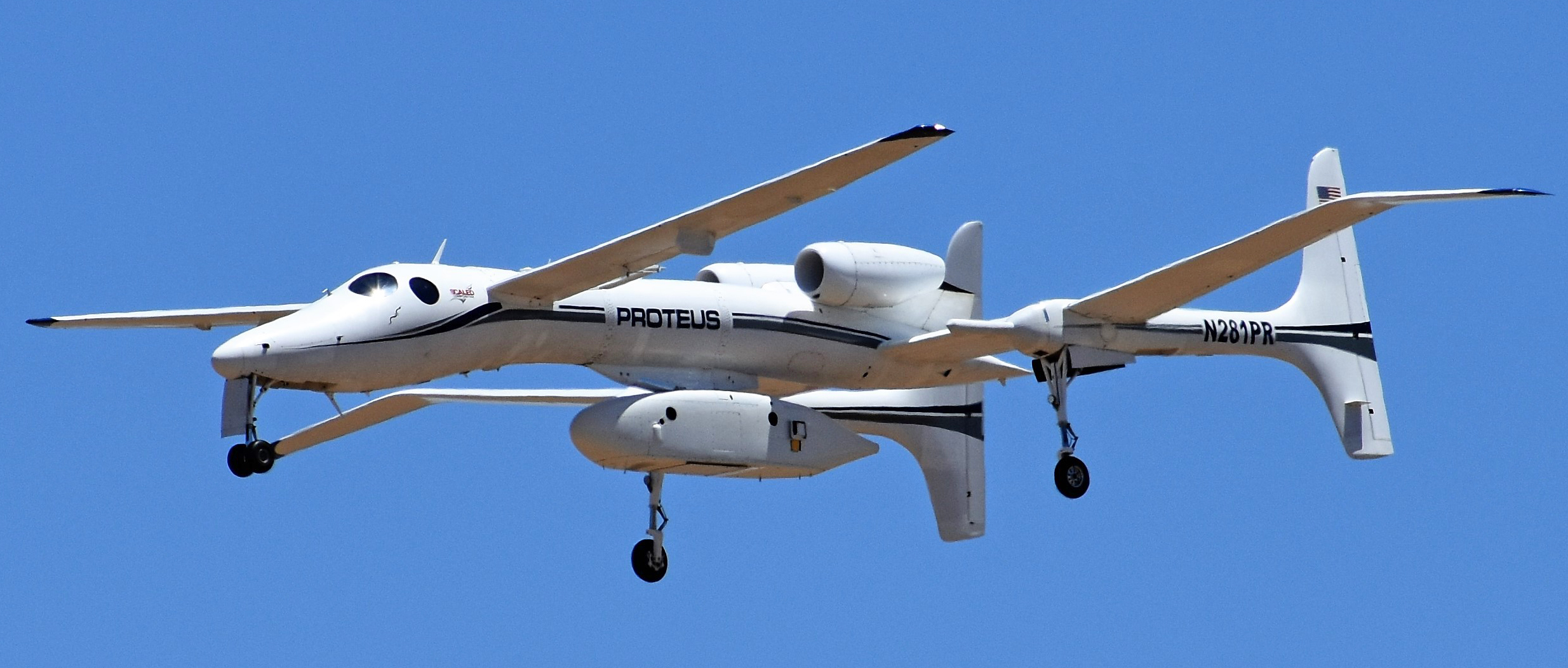 The first would be to support laser testing. The Pentagon has a slew of directed energy efforts ongoing, including those in the air-to-air realm. Considering where the treatment is situated on the aircraft, the latter would seem like the most likely application. The pod hung under Proteus for the tests appears to have two large dark lenses and one smaller one that could be indicative of cameras needed to record a laser test. They are fixed and facing directly to the side of the aircraft, so recording another aircraft would make sense here especially considering that the Model 401 jets and Proteus have been flying at around the same altitude, but offset laterally to varying distances.