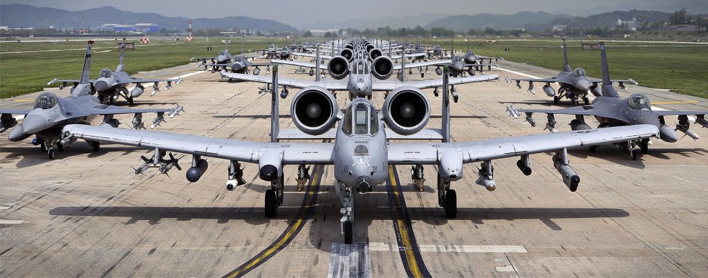 The A-10’s loadout is optimized to go after North Korea’s expansive, albeit dated, armor and especially the thousands of artillery pieces stationed along the demilitarized zone that pose a clear threat to the South. They carry a pair of AGM-65 Maverick missiles, a pair of GBU-12 500lb laser guided bombs, a pair of GPS-guided GBU-38 500lb Joint Direct Attack Munitions, a seven round 2.75 inch rocket pod likely loaded with marking rounds used to designate targets for attacking fighters, and a pair of AIM-9L/M Sidewinders for self protection against North Korea’s geriatric air force round out its expendible stores. Oh and we cannot forget its GAU-8 Avenger 30mm cannon that is likely loaded with 1,174 rounds. The A-10s also carry the LITENING targeting pod. All said this is a great real-world illustration of just how much combat punch a single A-10 brings to the table.