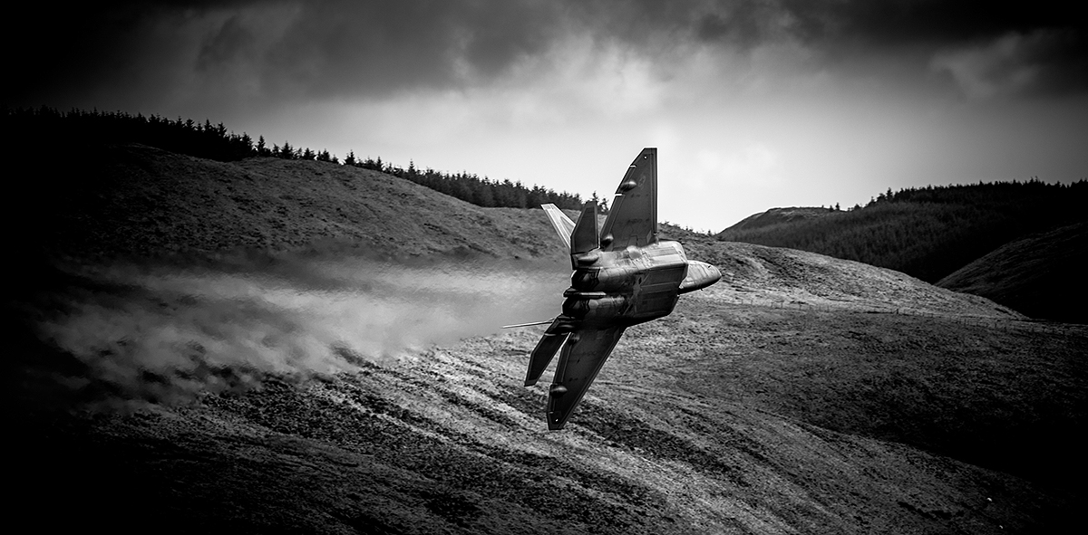 The second was as incredible as the first and saw a program first for this silver-clad 5th Generation fighter. Two of the super-cruising, thrust-vectoring, stealth-optimized, air dominance jets undertook a dedicated low-level mission through the UK’s famous Low-Fly system, the silver angels dropping down from the heavens, weaving and glinting their way through the green valleys of Wales.