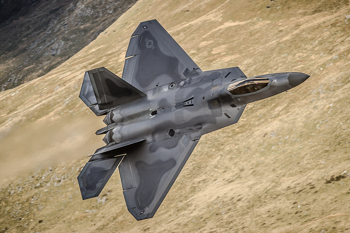 “Flying the Mach Loop was a unique opportunity to hone our low-level proficiency in mountainous terrain, which is something we don’t have the capability to train to at our home station in Florida. Many pilots in the 95th FS have previous experience operating on the ranges in the Western US and Alaska, which are quite similar to the ranges in Wales.” Flying a Raptor through the Mach Loop is no different than any other fast jet in the low-level arena. It required significant mission planning and a spot-on crosscheck to mitigate the inherent risks of tactical maneuvering close to the ground.