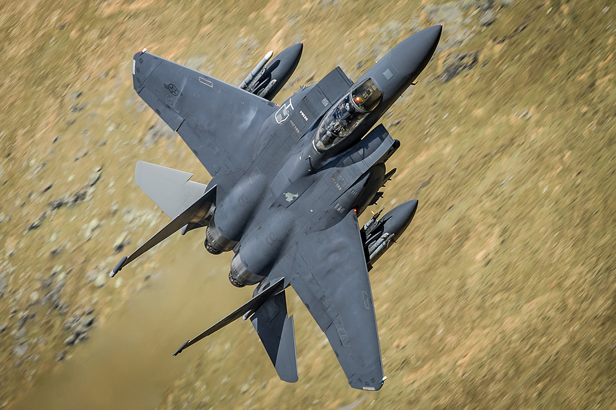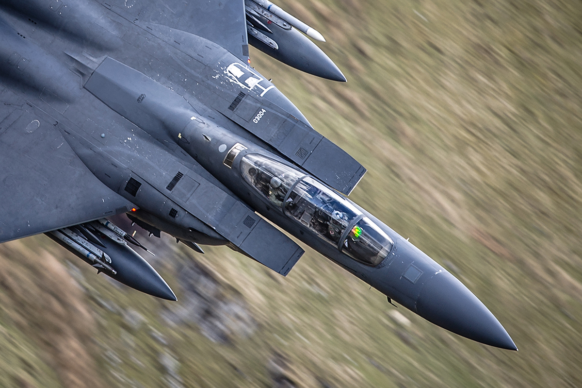 The jets themselves took on an almost computer graphic-like appearance as the light danced off their futuristic fuselages. They dived in from Lake Bala and entered the valley towards the Cadair Idris peak, the jets could be seen to undertake hard jinks while making their way down-low. “Any fighter pilot knows that maneuvering in relation to the bandit is essential to survival,” explained one of the two pilots. “In this case the highest threat ‘bandit’ is the ground. The US Air Force has a multitude of instructions, regulations, and training rules that are in place to keep us safe, especially in the low altitude environment. As you can imagine, the speeds and altitudes at which we fly may require ‘aggressive’ turns, within our maneuver limitations, to stay on route and ensure terrain clearance.”