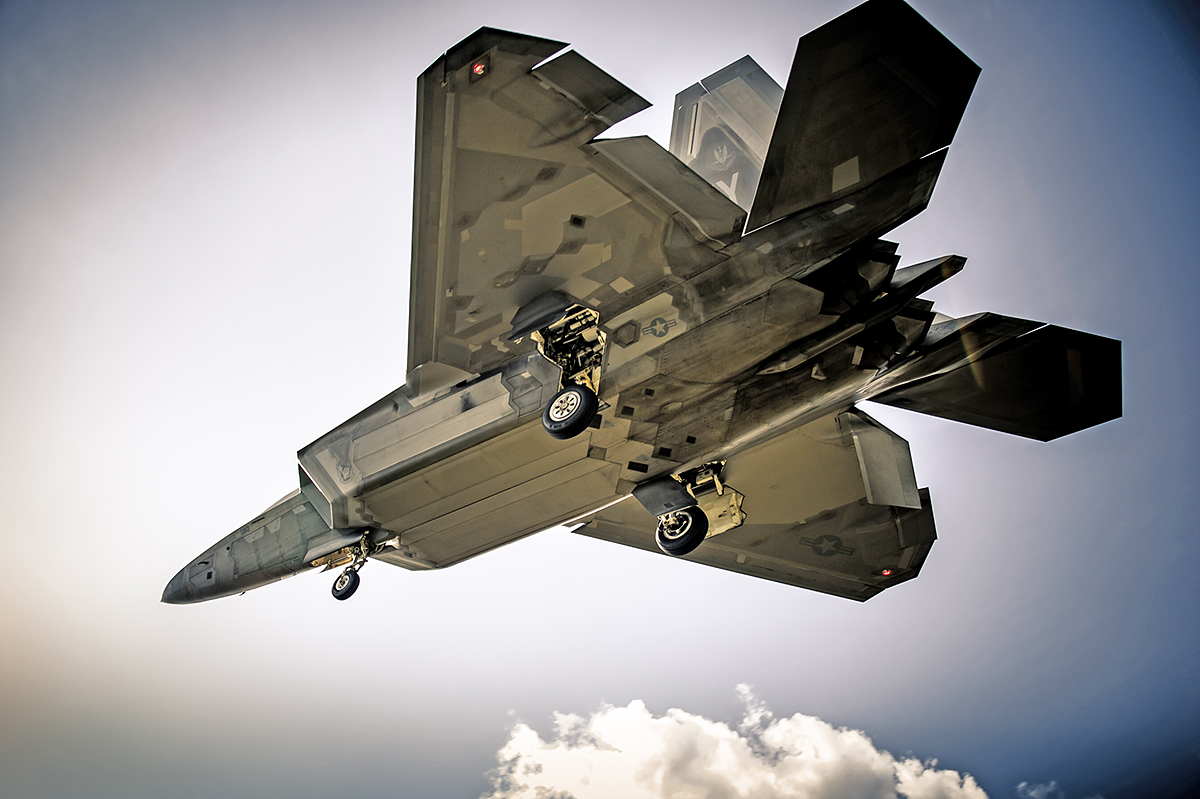 “All F-22 pilots maintain a low-level currency (down to 500ft AGL)” explained one Raptor pilot, “and this requires periodic flights at that altitude. Although the 95th FS typically operates over the water due to over-land supersonic restrictions, it’s also an important basic fighter pilot skill to safely operate at low level. This low-level mission highlighted the differences required in intercept geometry, the increased performance of the F-22, and the dangers associated with low-level flying while experiencing such high G onset rates, sustained G loads and decreased time-to-impact… Although we cannot get into details of what a typical mission consists of, Raptor pilots must be comfortable operating at the full flight envelope available to them. Whether its 60,000ft or 500 feet, the pilot must be comfortable with his environment and should be ready to take advantage of any opportunity that may present itself during a mission.”