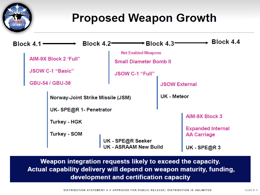The year before, the F-35 Joint Program Office had announced plans to try to begin adding some Block 4 capabilities on a rolling basis as part of a concept known as Continuous Capability Development and Delivery (C2D2). It had already presented the possibility of breaking the upgrade package in four separate smaller updates referred to as Blocks 4.1, 4.2, 4.3, and 4.4.