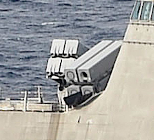 However, official pictures have also consistently shown that, after more than nine months, the forward-deployed Gabrielle Giffords has still not loaded a fresh launch canister in place of the one it expended last year and has been operating with seven RGM-184As ready to fire, rather than a full load of eight.