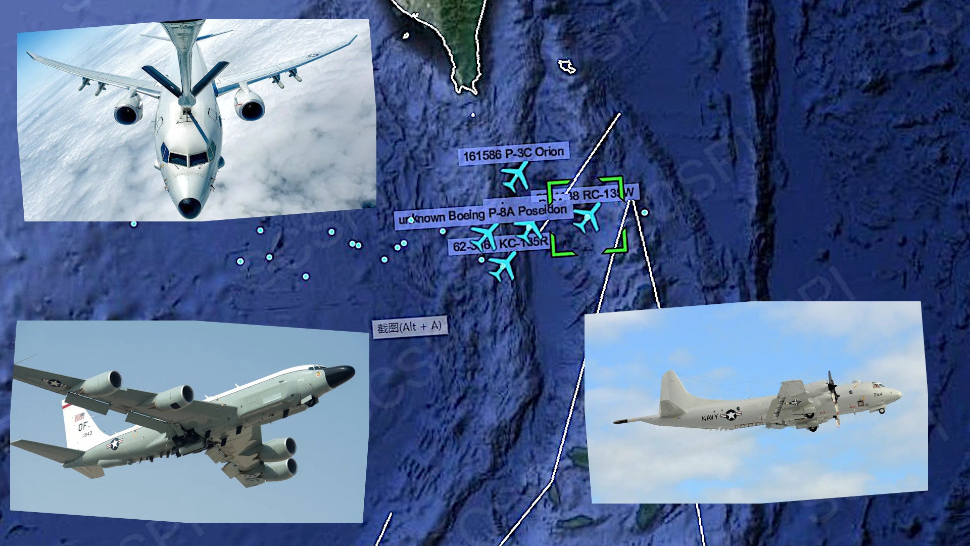 Just today, an RC-135W and a KC-135T were spotted flying in the area. Yesterday, an EP-3E and three separate P-8As flew in and around the channel. The day before that, a P-8A, a P-3C, an EP-3E, and an RC-135W had all been present at various times, with at least one KC-135R flying in support of the activity there.