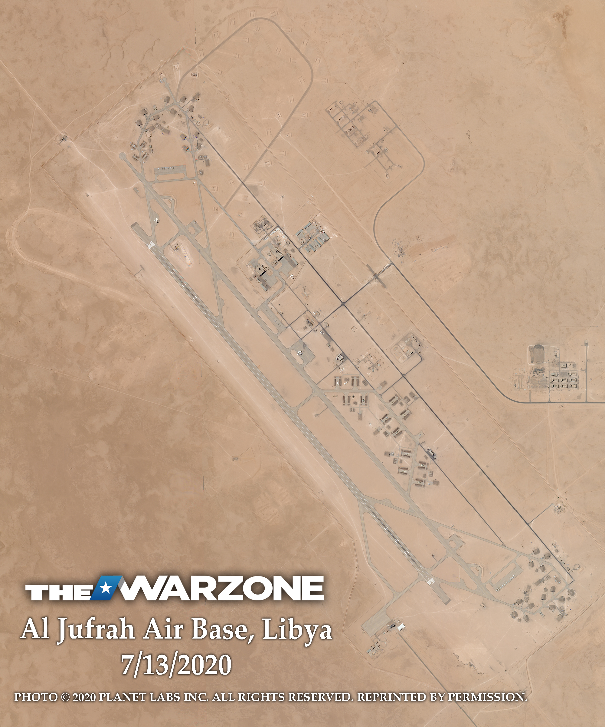Recent satellite images of Al Jufrah Air Base in central Libya shows two Su-24 Fencer combat jets parked outside hardened aircraft shelters at the southern end of the base. This indicates these jets are still operating out of the base nearly a month after U.S. Africa Command released imagery showing one of them actually in flight there. This all comes amid an intensifying aerial component of the country’s civil war as foreign powers, chiefly Turkey and Russia, become even more directly entangled in the fighting.