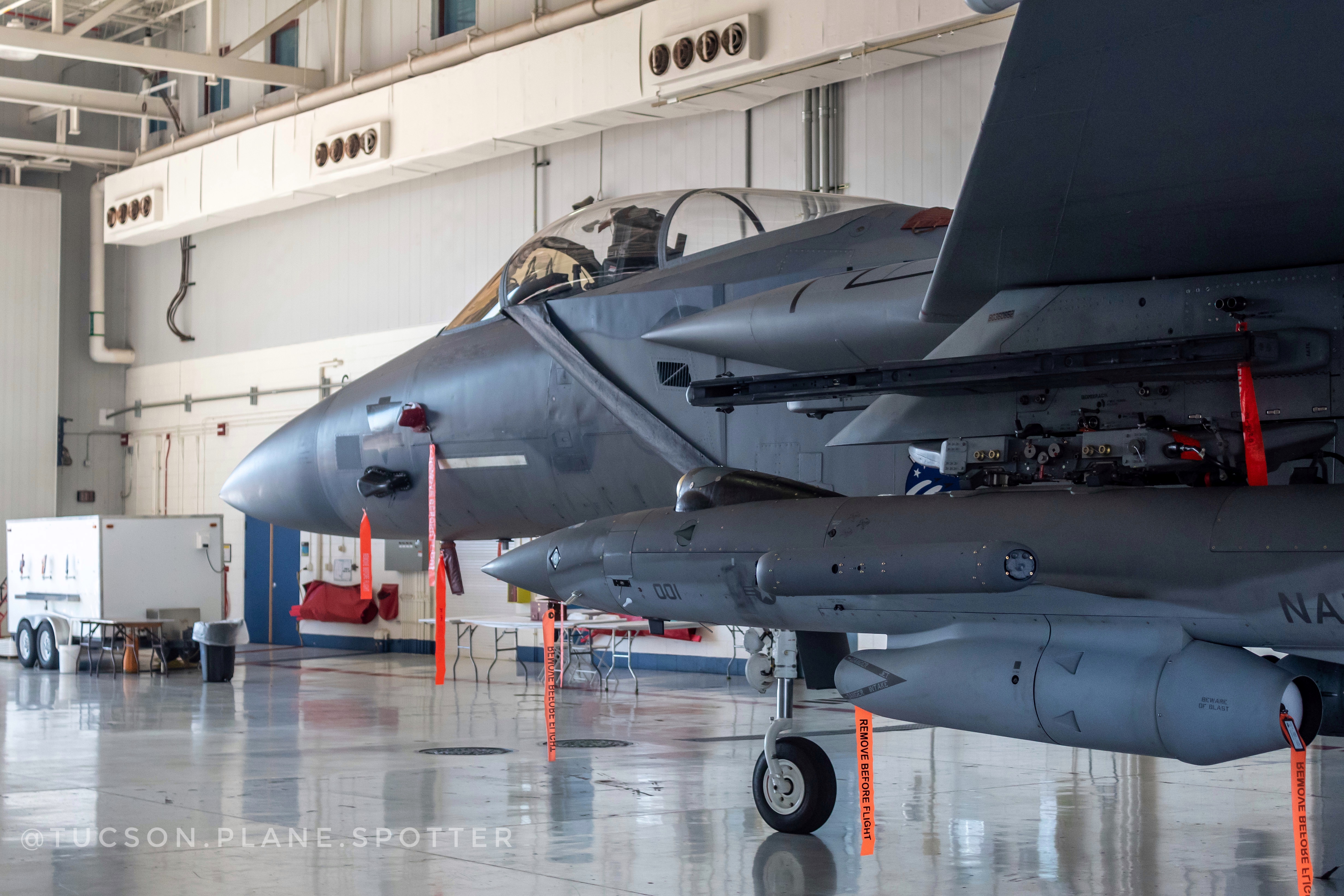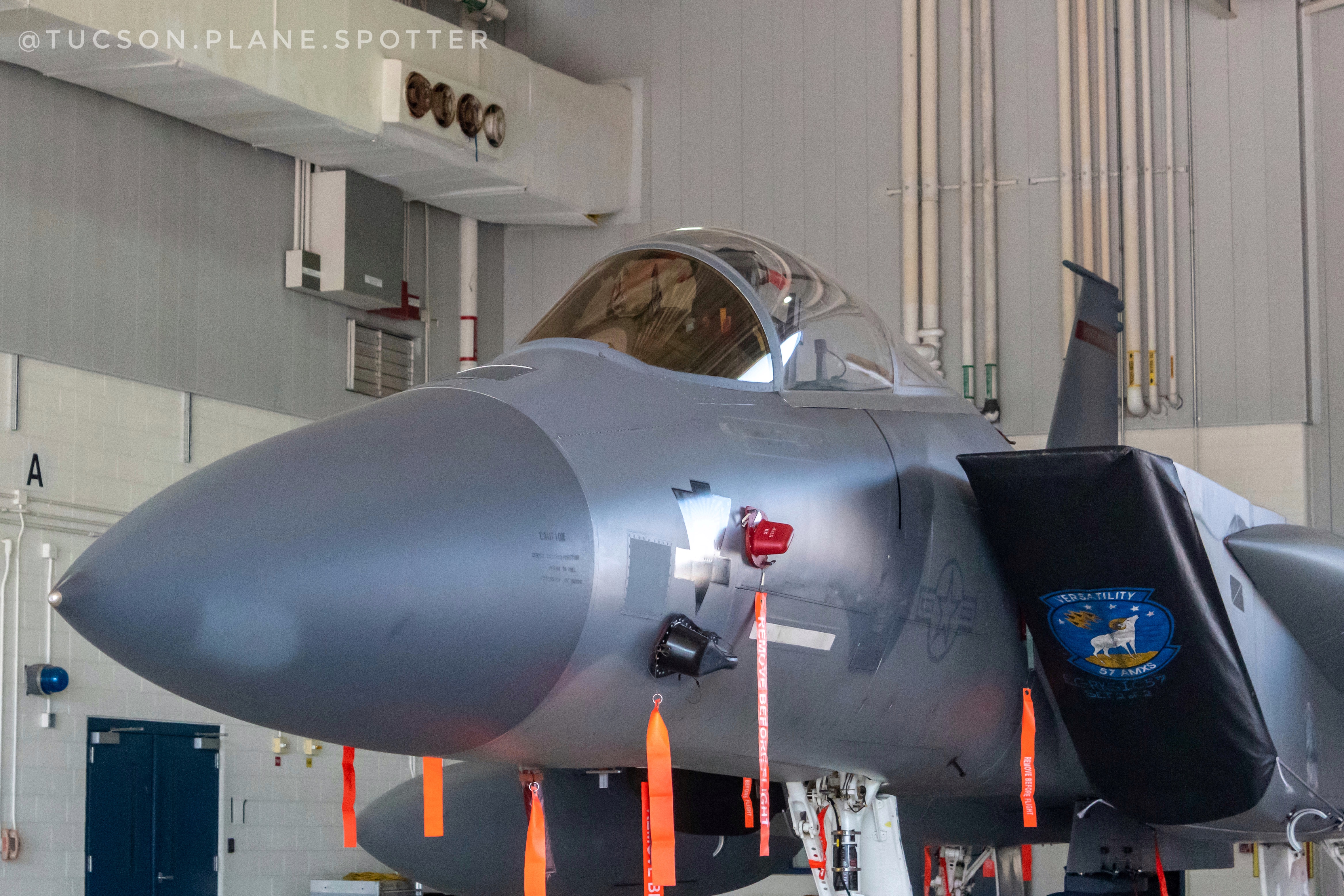 The F-15C with a jet-powered drone attached to its left underwing pylon was photographed last winter by @tucson.plane.spotter on Instagram. The aircraft’s intake coverings feature the 57th Aircraft Maintenance Squadron’s insignia. The unit is assigned to the 57th Maintenance Group, part of the 57th Wing, which is very unique as it supports the huge range of aircraft that are hosted at Nellis Air Force Base where it calls home. This includes various tests of developmental systems and subsystems aboard the vast majority of the Air Force’s combat aircraft fleet. It turns out that the F-15C in question was borrowed from the 142nd Fighter Wing for trials related to the UTAP-22 drone that could last to around a year.