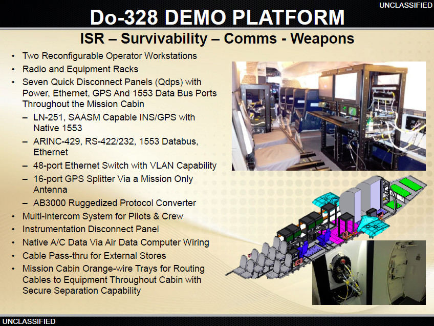However, as I was first to report back in 2015 for War Is Boring, Cougar is set up to be a modular, plug-and-play testbed for sensors, communications systems, defensive countermeasures, and even weapons. Inside, the aircraft has readily reconfigurable work stations and equipment racks, as well as adaptable fuselage bays, to support all kinds of related testing. The plane also has two external sponsons, one on each side of the rear fuselage, that can carry stores or other equipment externally.