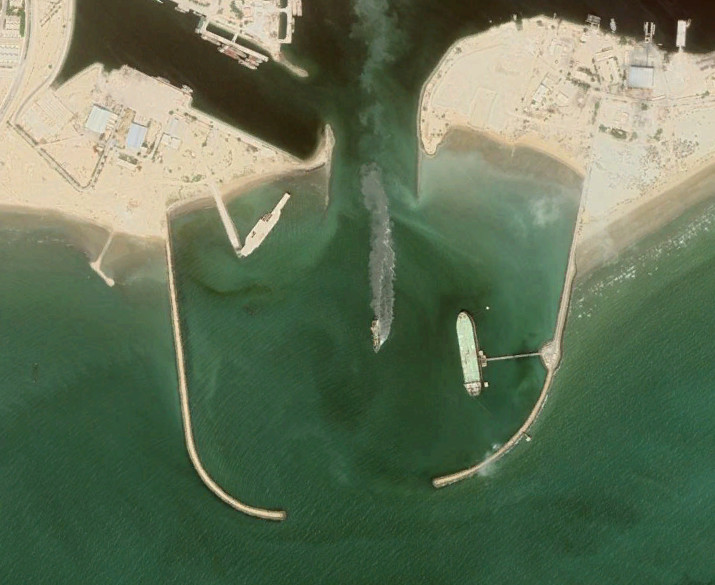 It’s not clear when the Iranians moved the barge into the Straight of Hormuz from its mooring in the port city of Bandar Abbas. The War Zone reviewed imagery from Planet Labs that shows that it was still at Bandar Abbas on July 20, but had left by July 23.