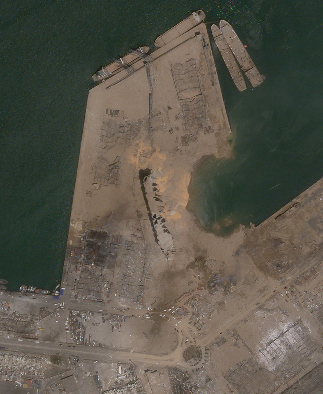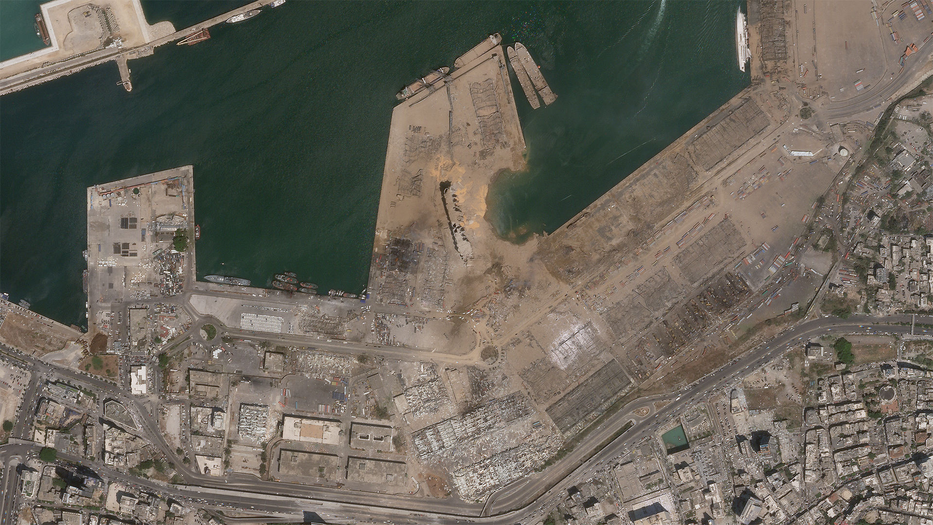 Severe damage to structures on land is readily visible in the satellite imagery more than a mile in all directions from the epicenter of the blasts. Various levels of damage extend well beyond that with reports that the secondary, which drew comparisons to the Halifax disaster in Canada in 1917 and other large industrial accidents, rattled windows on the island of Cyprus 100 miles west in the Mediterranean Sea.