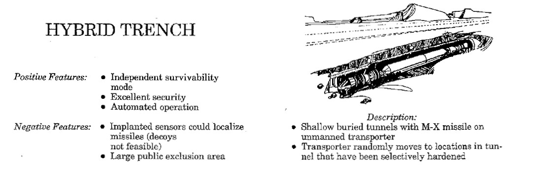 In principle, this concept could help reduce the vulnerability of these weapons to pre-emptive strikes while still keeping them in place and ready to launch. It is something the U.S. military actually explored during the end of the Cold War as a way to protect its then state-of-the-art LGM-118A Peacekeeper intercontinental ballistic missiles (ICBMs), but abandoned the idea for a host of reasons.