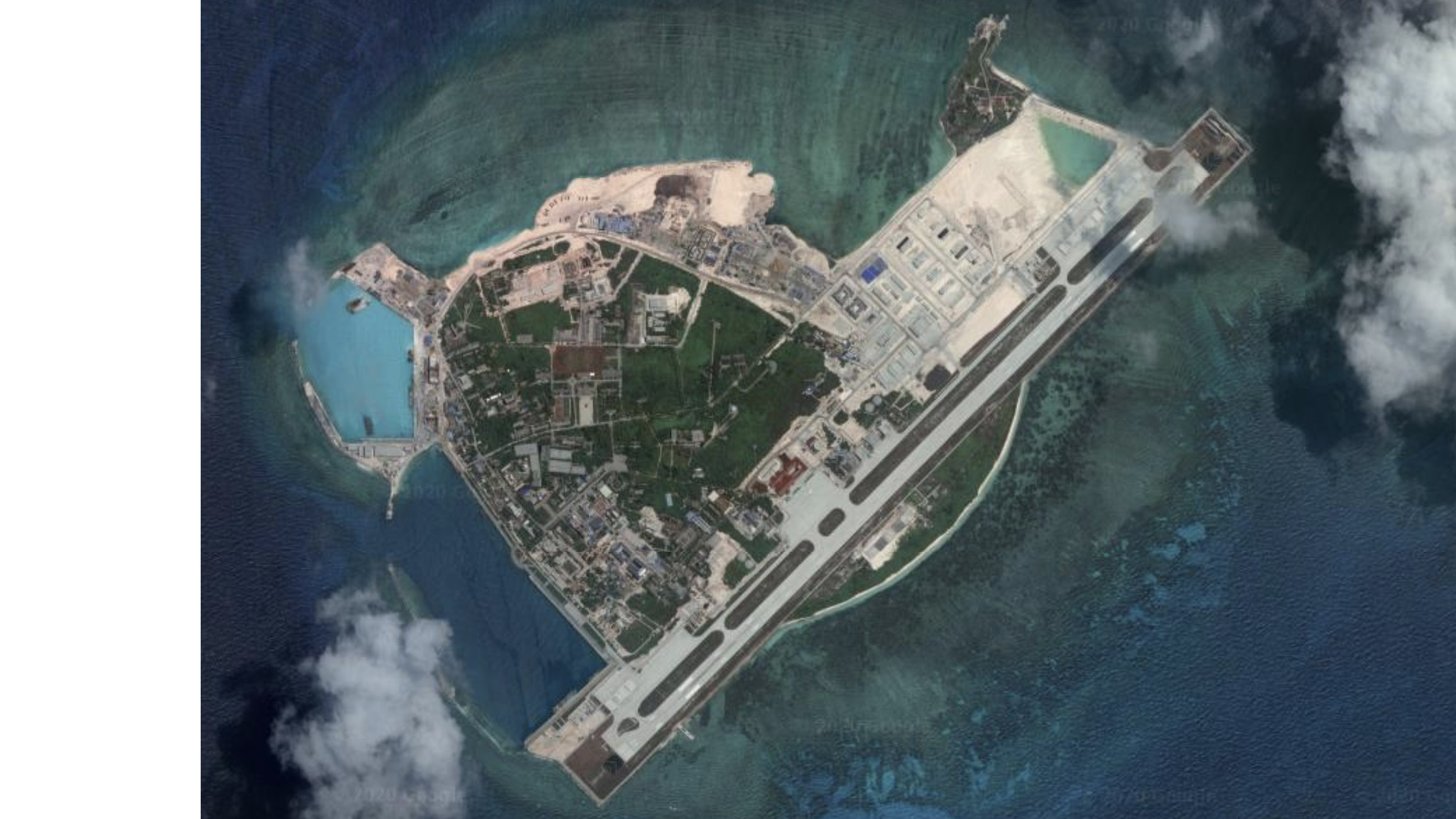 Back in January 2015, the first images appeared of armed PLAN J-11 Flanker fighters operating from a newly reconstructed runway and aviation support facilities. The Flankers provide a defensive umbrella that extends to cover Taiwan’s Dongsha Islands to the north, most of Vietnam to the west, the Philippines in the east, and down towards the Spratly Island archipelago. In addition to the detachments of J-11s, it is also known to host BZK-005H drones.