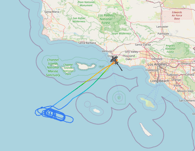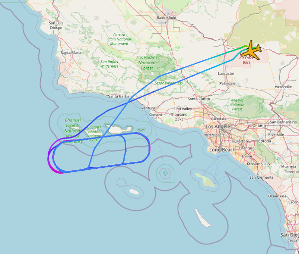Aerospace photographer Jack Beyer was among the first to notice Stargazer’s so-far-unexplained outing, which began at around 5:00 AM local time and wrapped up some two hours later. After clearing the Channel Islands, the aircraft, which carries the civil registration code N140SC, had entered in a long, elliptical race track orbit and had begun to climb, eventually reaching an altitude of around 40,000 feet while facing out into the Pacific.