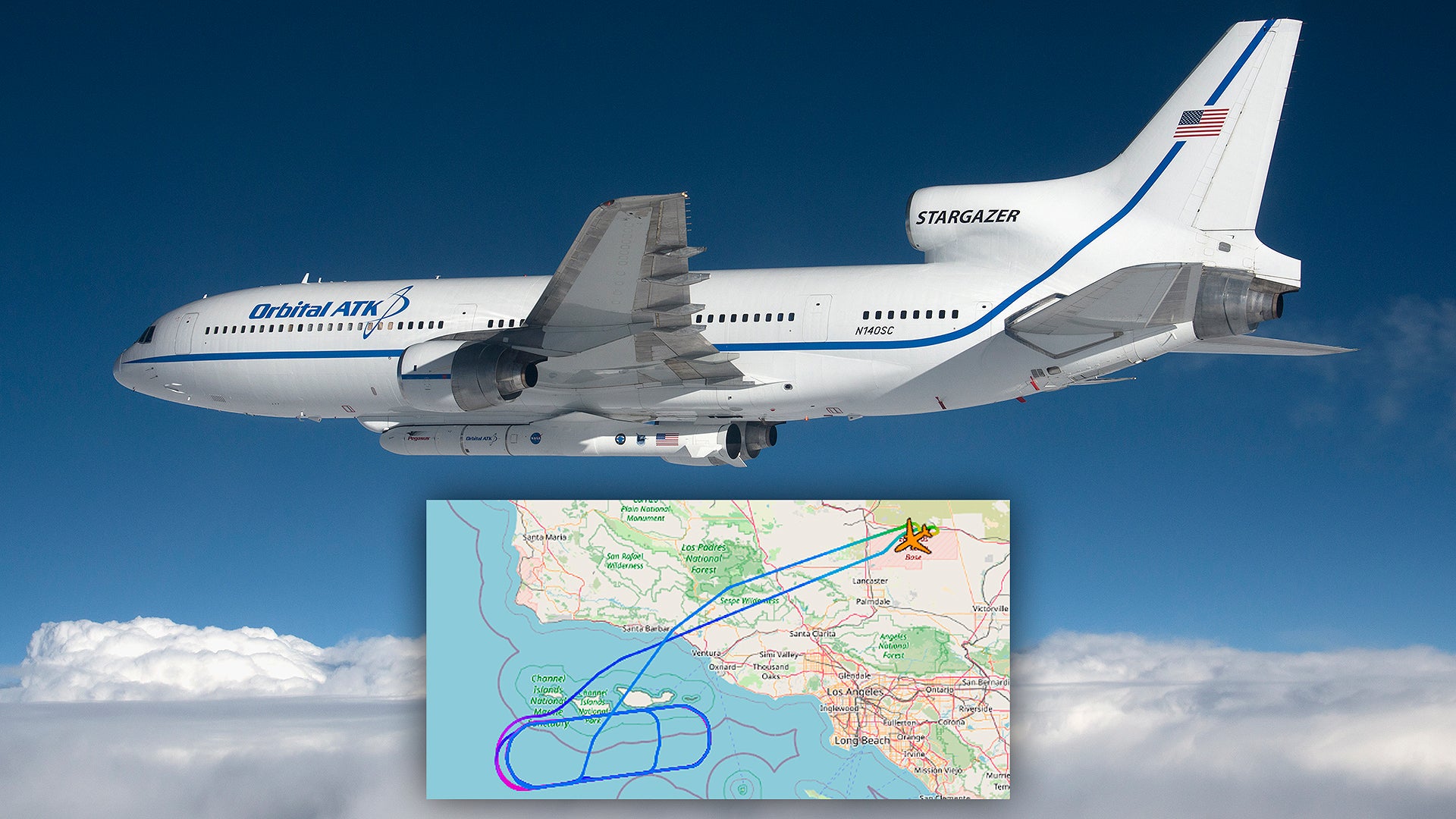 Northrop Grumman’s Stargazer conducted a curious flight from Edwards Air Force Base in California, out past the Channel Islands off the state’s coast and into the Pacific Ocean, and back yesterday. The aircraft, the only Lockheed L-1011 Tristar still flying today, which normally operates from the Mojave Air and Space Port, is best known as the mothership for the Pegasus XL space launch rocket, but has been involved other advanced aerospace testing in the past.