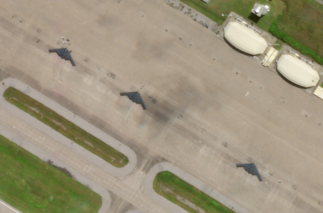 The image shows some action around one of the bombers, but it is notable that none of them are seen using their B-2 Shelter System (B2SS) enclosures at the time the photo was taken.