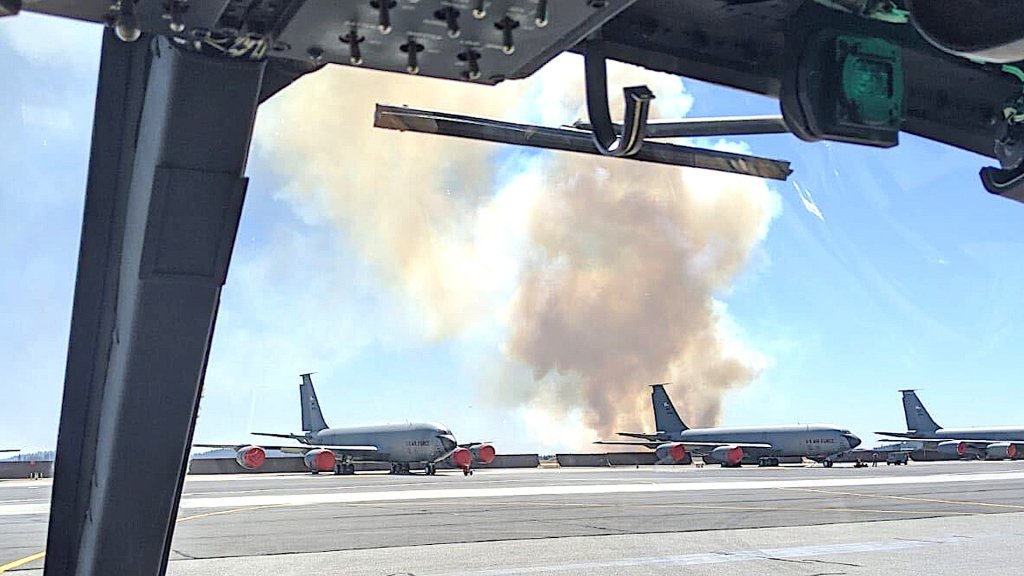 This fire is something of a cruel irony for Fairchild, which is home to the 92nd Air Refueling Wing and its KC-135R aerial refueling tankers. Last week, 17 KC-10A Extender tankers from Travis Air Force Base in California touched down at the base after they were forced to evacuate due to raging wildfires in their home state.
