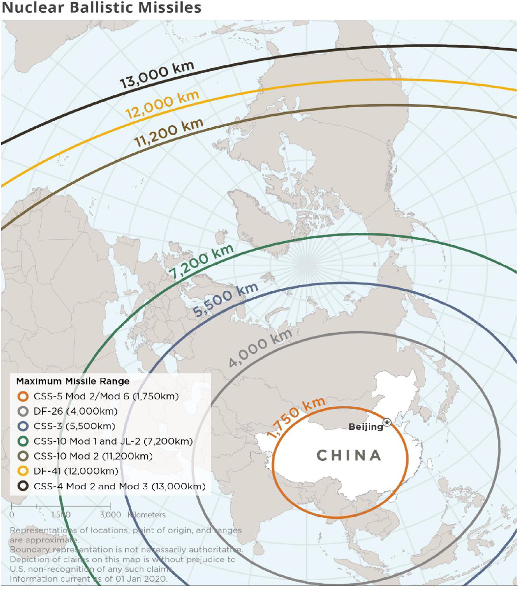 “Commercial imagery from 2019 has revealed that China has constructed an ICBM silo at one of the PLARF’s Western training ranges that is smaller than China’s existing CSS-4 (DF-5) silos. According to state media, the CSS-X-20 (DF-41) ICBM can be launched from silos; this site is probably being used to at least develop a concept of operations for silo basing this system. There are also some indications that China may be building new CSS-4 (DF-5) ICBM silos.”